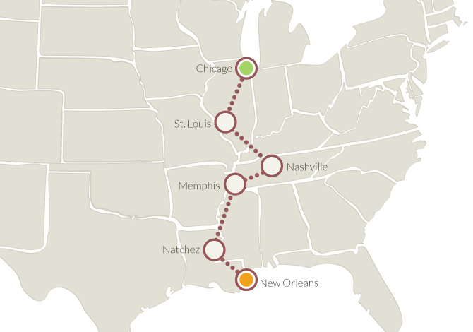 Chicago affascina con la sua architettura mozzafiato e il blues; St. Louis, col suo iconico Gateway Arch, è una porta per il sud. Nashville è la capitale mondiale della musica country, mentre Memphis vibra al ritmo del rock ‘n roll e del soul.